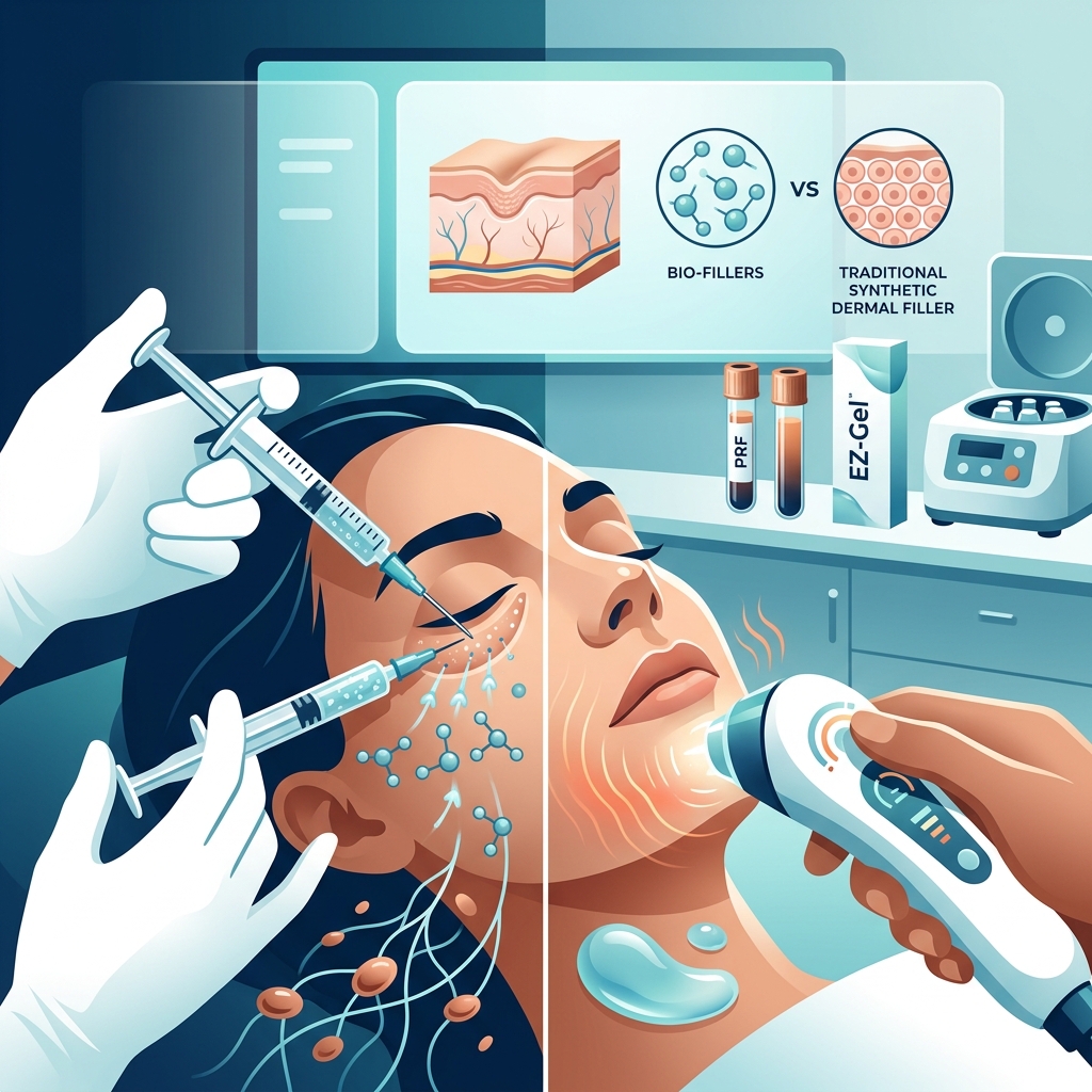 Safety with bio-fillers is exceptional when administered by experienced providers. PRF, being autologous (from your own blood), carries virtually no risk of allergic reaction, granuloma formation, or vascular compromise. EZ-Gel and similar cross-linked hyaluronic acid bio-fillers have extensive safety histories and are FDA-cleared for dermal injection.