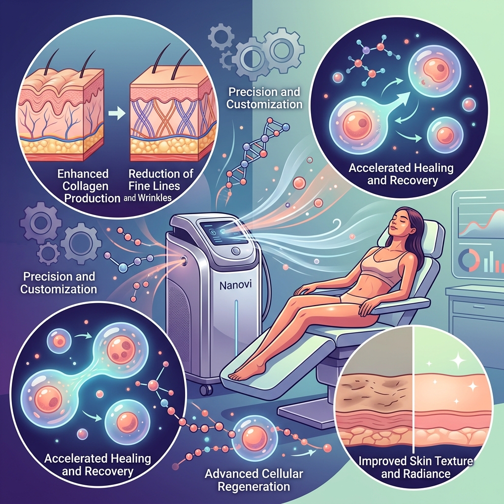 Nanovi therapy is a sophisticated regenerative treatment that uses specialized nano-scale technology to stimulate your skin’s innate repair systems. The therapy works by delivering targeted energy that activates cellular signaling pathways—essentially telling your skin’s fibroblasts to ramp up production of essential proteins and restore structural integrity from the inside out.