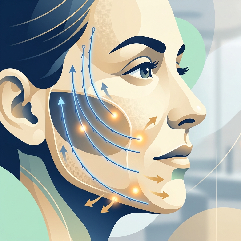 Thread lifts work biomechanically. They anchor tissue at a higher point, creating immediate lift while stimulating collagen production over weeks and months. They provide support where gravity is pulling downward.