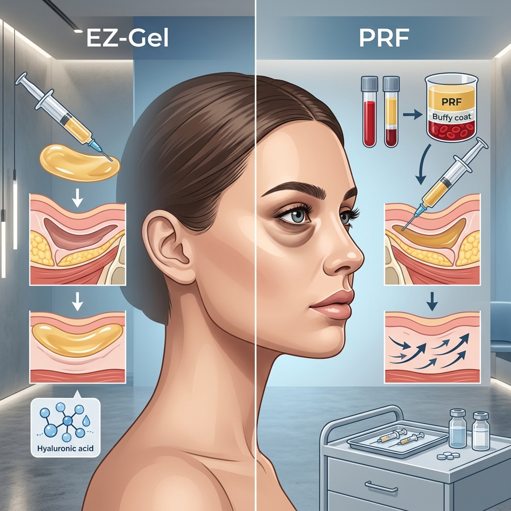 The choice between them isn’t about which is “better” in absolute terms. EZ-Gel wins on immediacy and predictability. PRF wins on biological authenticity and potential for deeper tissue remodeling. Some patients have structural needs that favor one approach; others choose based on lifestyle preference (someone with an event in two weeks will want EZ-Gel; someone comfortable with gradual improvement might choose PRF).