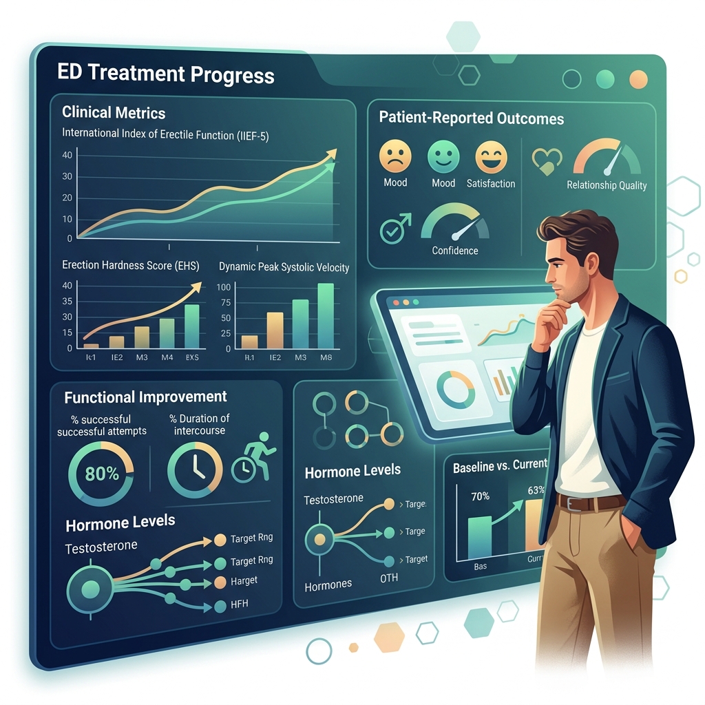 Quality of life PROs extend beyond sexual function alone. Does treatment reduce performance anxiety? Have relationships improved? Do you feel more masculine, more confident, or more present during intimate moments? Can you engage in sexual activity without worrying about failure? These dimensions define success for most patients far more than any laboratory value does.