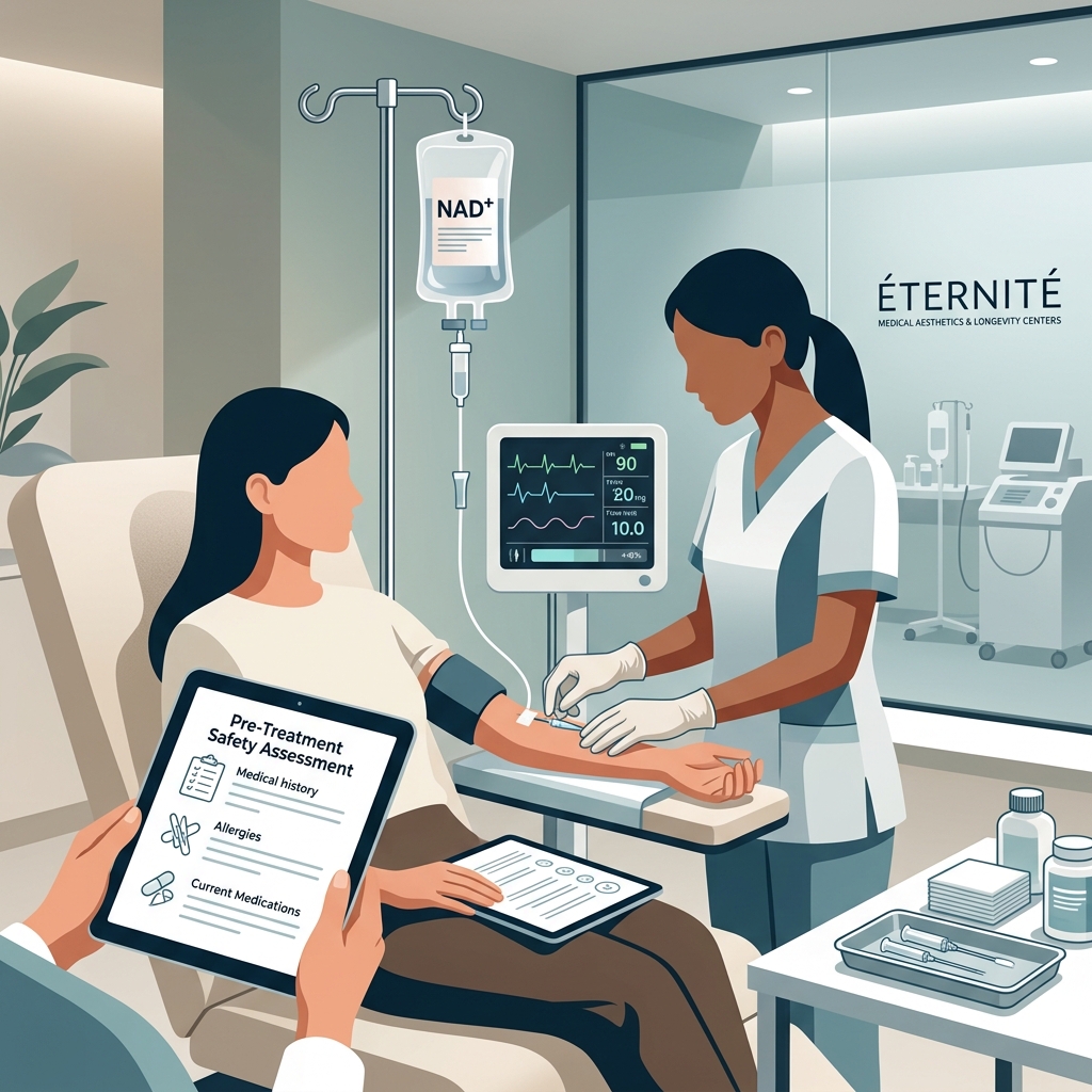 NAD (nicotinamide adenine dinucleotide) IV therapy has gained significant traction among longevity-focused individuals seeking cellular rejuvenation and metabolic optimization. At Éternité Medical Aesthetics & Longevity Centers, we’ve integrated NAD infusion protocols into our comprehensive wellness offerings because the science supporting its role in energy production, DNA repair, and age-related decline is compelling. However, like any intravenous therapy, NAD administration demands rigorous safety standards and medical expertise. This guide outlines the protocols we follow to ensure every patient receives NAD IV treatment with maximum safety and efficacy.
