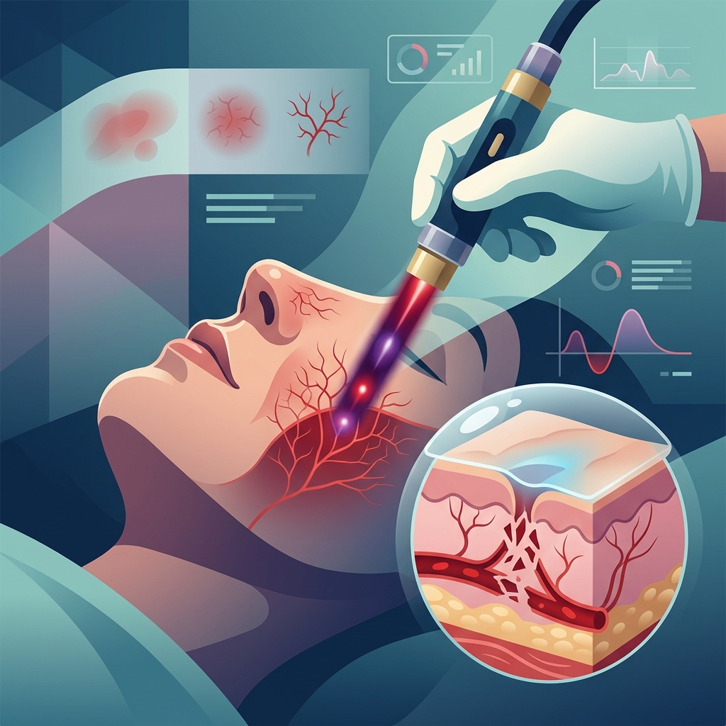 We utilize advanced laser systems specifically engineered to target the hemoglobin within blood vessels while leaving surrounding skin intact. Our technology platform is calibrated for selective photothermolysis, a process where specific wavelengths penetrate to the exact depth of vascular lesions and coagulate the vessel walls without collateral thermal damage.