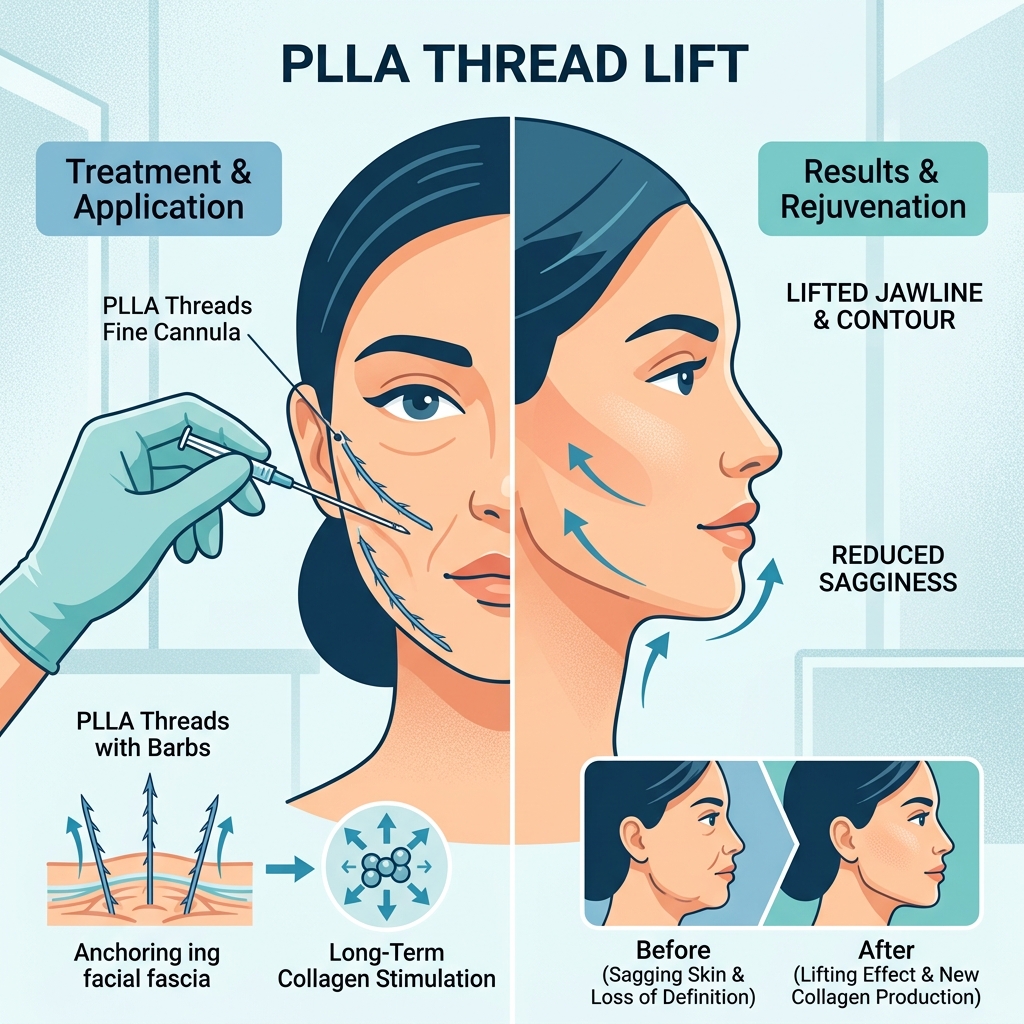 PLLA thread lifts represent a paradigm shift in non-surgical facial rejuvenation. Unlike dermal fillers that add volume temporarily or neurotoxins that relax muscles, PLLA threads work by lifting slack tissue while simultaneously triggering your skin’s natural collagen regeneration.