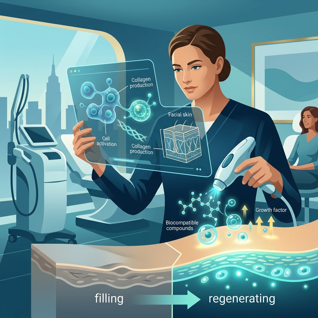 Regenerative medicine in aesthetics isn’t a single treatment. It’s a philosophy grounded in cellular biology: stimulate your own healing mechanisms rather than simply replacing lost volume. This approach draws from established regenerative principles used in orthopedic medicine and advances them for facial aesthetics.