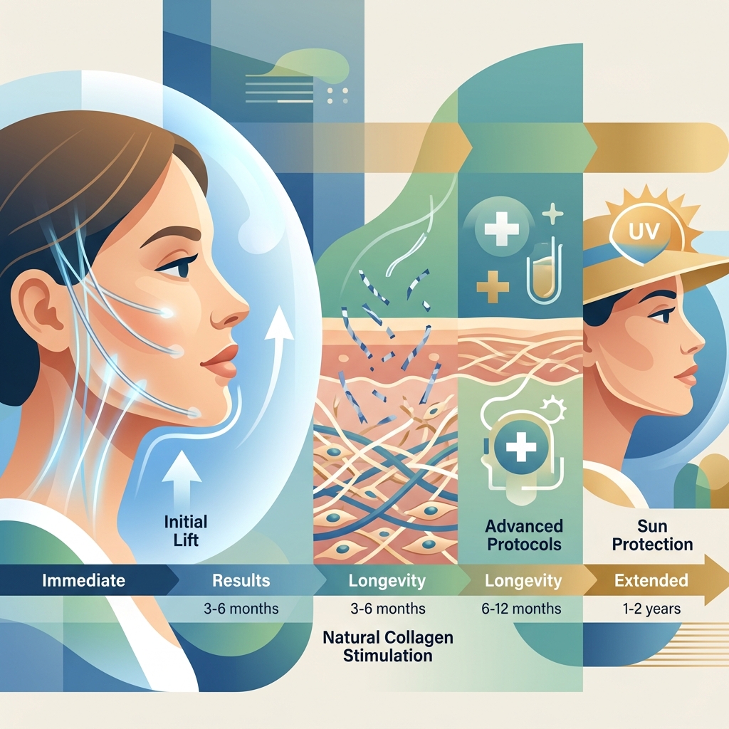 Key insight: The lifting effect you see immediately is partly thread placement and partly swelling. Over 2 to 4 weeks, swelling resolves and the true structural benefit emerges as collagen deposition begins.