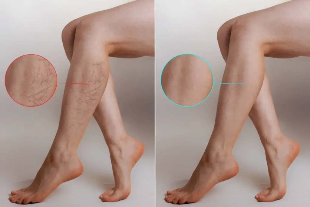Vasculaze uses a high-peak power laser that targets the pigmented hemoglobin. It diminishes the appearance of unsightly leg veins and lesions. Vasculaze is a safe and effective treatment for clearing unwanted spider veins and other visible lesions. It treats leg veins, including spider veins, by directly targeting the blood vessels causing the blemish.